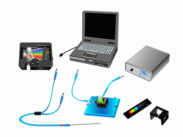 熒光測(cè)量可以用于測(cè)量液體,固體和粉末的熒光,由于熒光測(cè)量的特殊性,所以需要一個(gè)高效的激發(fā)光源,一個(gè)高效的濾光片濾出激發(fā)光,由于熒光一般比較弱,所以需要一個(gè)具有很高靈敏度的光譜儀來(lái)收集光。