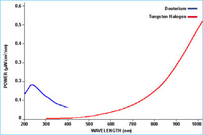 以上光譜圖分別顯示了氘燈(200-400nm)和鹵燈(400-1100nm)的光譜輸出,以避免氘燈譜線中大于400nm時的尖峰。 SPECIFICATIONS