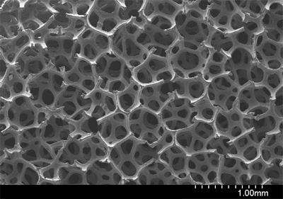 Thickness: 1.2 mm Density: 320 mg/cm2 Pore Size: 580 microns 典型SEM圖像1 / 典型SEM圖像2 / 典型SEM圖像3 |