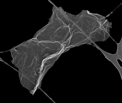Highly Concentrated Graphene Oxide Dispersion in Water Aqueous dispersion, 60 ml Concentration: 5g/L Composition: Carbon (79%), Oxygen (20%) Flake size: 0.5-5 microns Thickness: 1 atomic layer - at least 60%. Color:Brown SEM圖像 |
