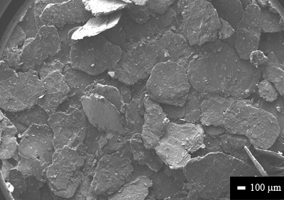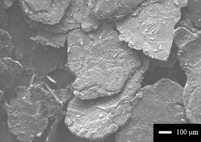 As the name implies, flake graphite has a distinctly flaky or platy morphology. Graphite is formed when pure carbon atoms link together to form flat sheets, which manifest themselves as large visible flakes or coarsely crystalline graphite. Properties: +100 mesh (150 microns or more in lateral size) Purity 99.9% SEM圖像1 / SEM圖像2 |