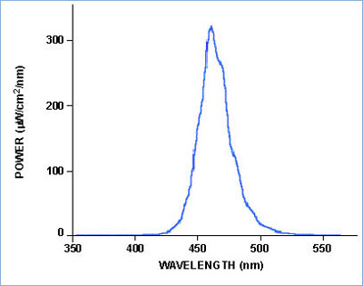 同樣提供LS-450,一種470nm 波長的LED,它可以采用范圍從380nm到640nm的LED。 LS-475可以提供一種相當(dāng)穩(wěn)定的輸出,并通過內(nèi)置風(fēng)扇降低溫度。它有一個SMA 905連接器,這就可以耦合光纖和一個濾光支架,它將放置25.4-mm圓或者50.8-mm方的濾光片,大3-mm厚。該產(chǎn)品附帶一個 800 mA, 12 VDC的電源。 LS-475 LED光源光譜輸出