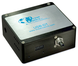 獨(dú)立使用的光源 USB-DT型光源是一個(gè)獨(dú)立的光源,可與海洋光學(xué)公司的任意一款光譜儀相連,它帶有一個(gè)15針的接口,用來(lái)連接光譜儀。在右側(cè)的吸光測(cè)量裝置中,USB-DT為一個(gè)比色皿提供光源。但是,在USB-DT型光源未與光譜儀相連的情況下,用戶不能通過(guò)軟件控制其功能。