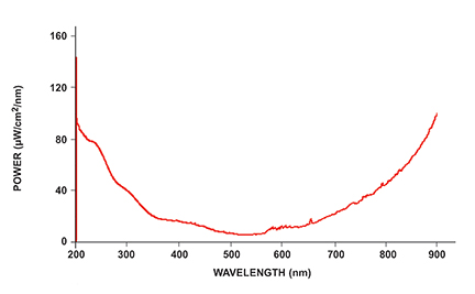 創(chuàng)新的氘-鹵鎢組合光源 氘-鹵鎢組合光源結(jié)合了氘和鹵鎢燈的連續(xù)光譜,這個(gè)光譜結(jié)合的光源能夠產(chǎn)生穩(wěn)定的、連續(xù)的紫外-可見光輸出,使USB-DT型光源成為一個(gè)適合吸光光譜測(cè)量的理想工具。 USB-DT光譜輸出